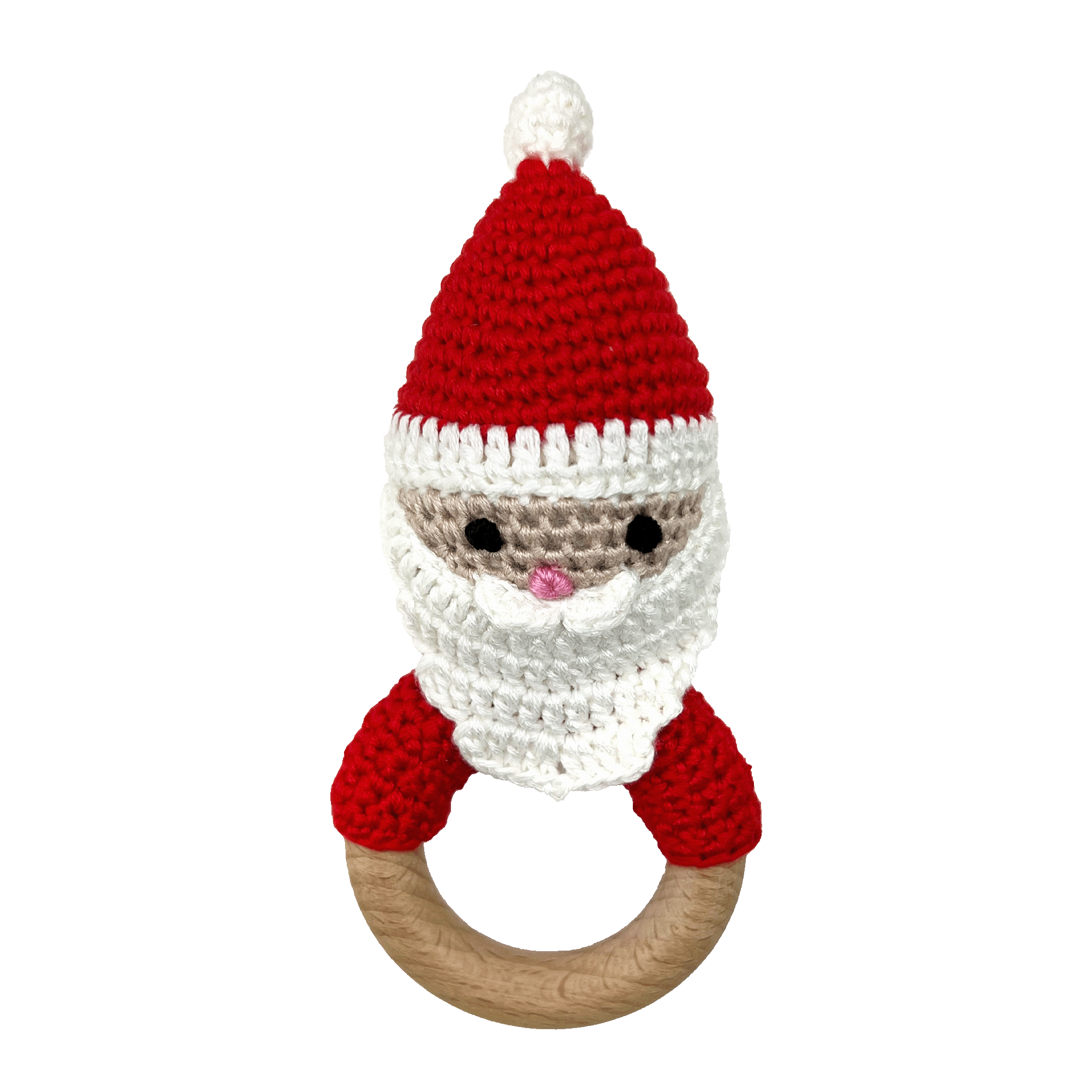Celebrate the holiday season with this festive Santa-shaped bamboo teether ring rattle! Made from soft, natural bamboo, it is gentle on baby's gums and perfect for little hands to hold.